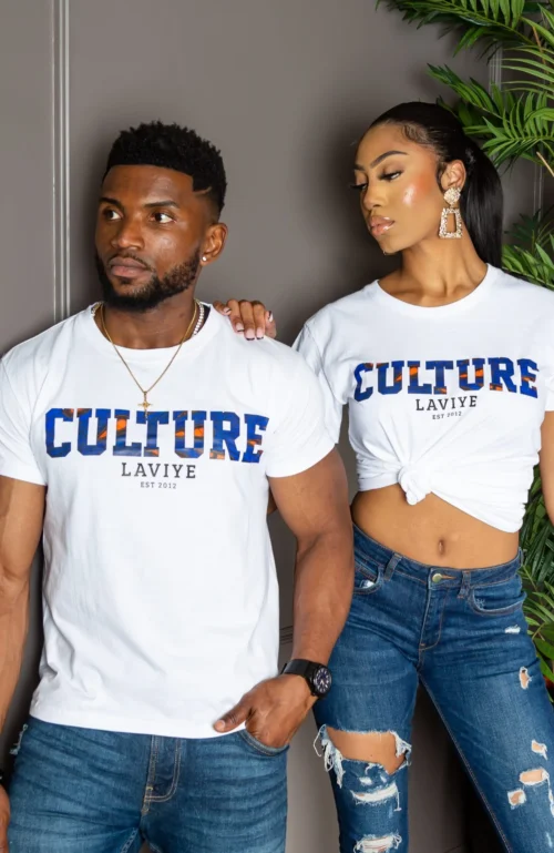 Introducing your new favourite t-shirt, exclusive to LAVIYE. Our limited edition ‘Culture T-Shirt’ is the classic tee that every wardrobe needs. Represent your culture with this Unisex African Print Graphic T-shirt.