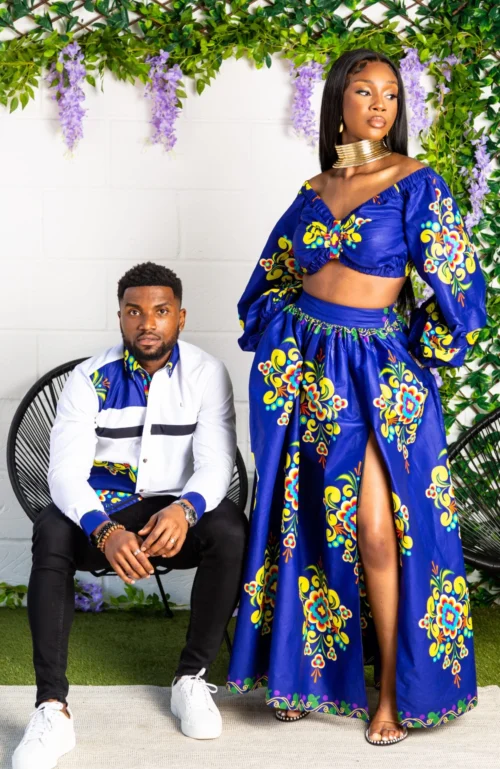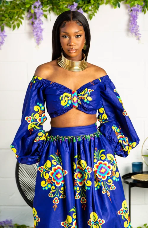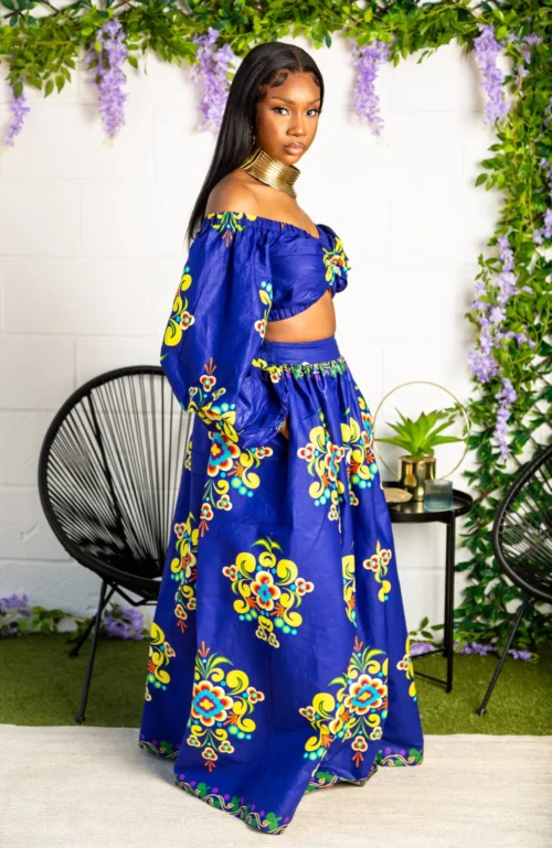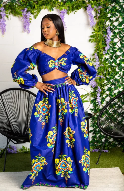 LAVIYE’s gorgeous African print maxi skirt and long-sleeved crop top set is perfect all season round. Stylish cropped silhouette and puff off shoulder sleeves perfectly match the African print maxi skirt with hidden zipper slit. Pair with killer heels and a cute clutch for instant glam!