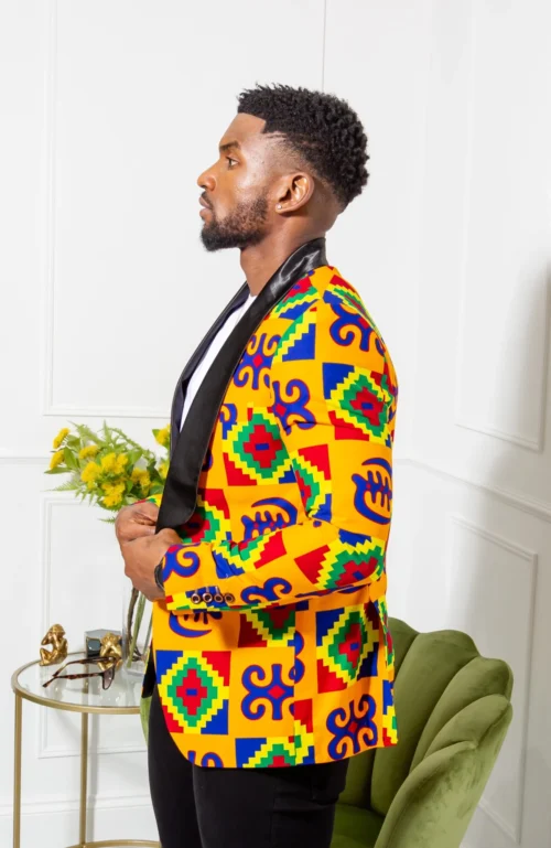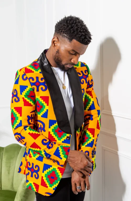 - Single breasted straight shawl collar African blazer