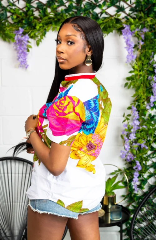 For a feminine take on a classic piece of casualwear, look no further than our African print short sleeved polo shirt. Made from ankara which is 100% wax cotton, our shirt has a flattering tailored fit with a contrast collar. For a summer look, pair with shorts or your favourite mini skirt. For a relaxed fit, please size up!
