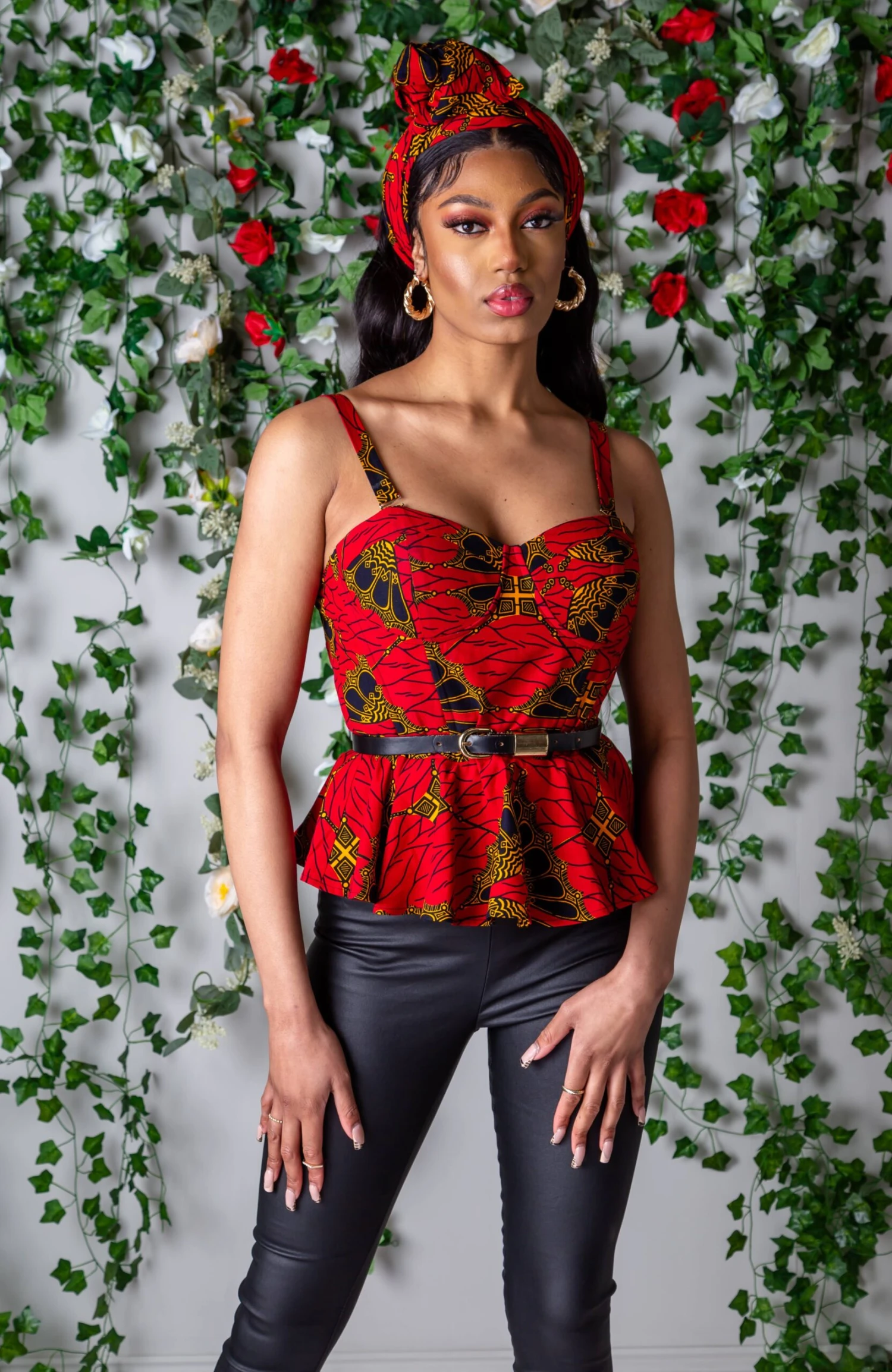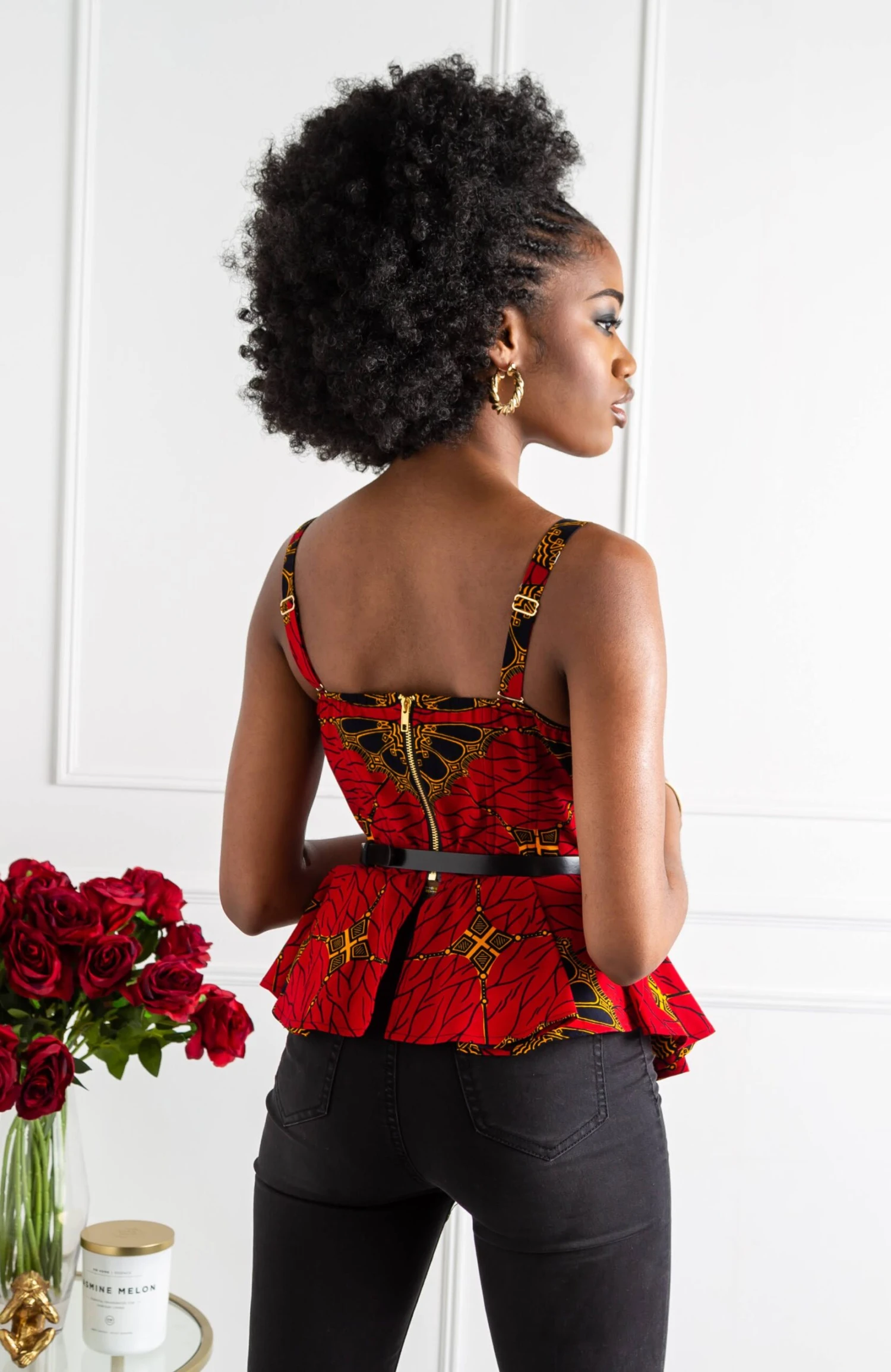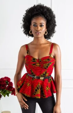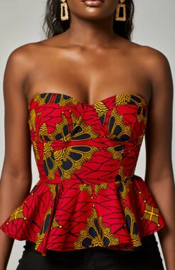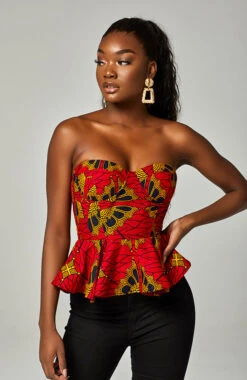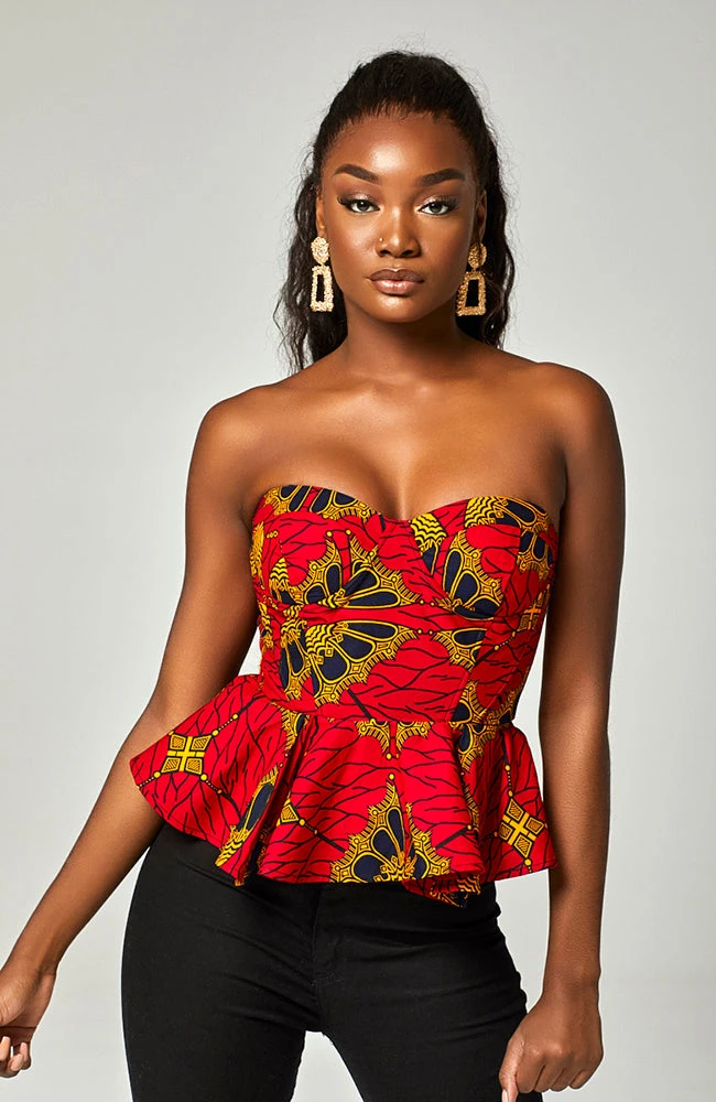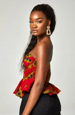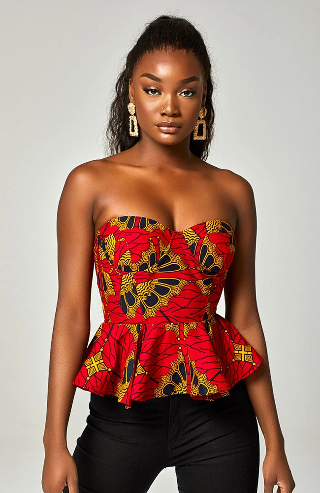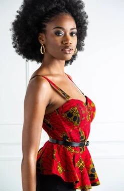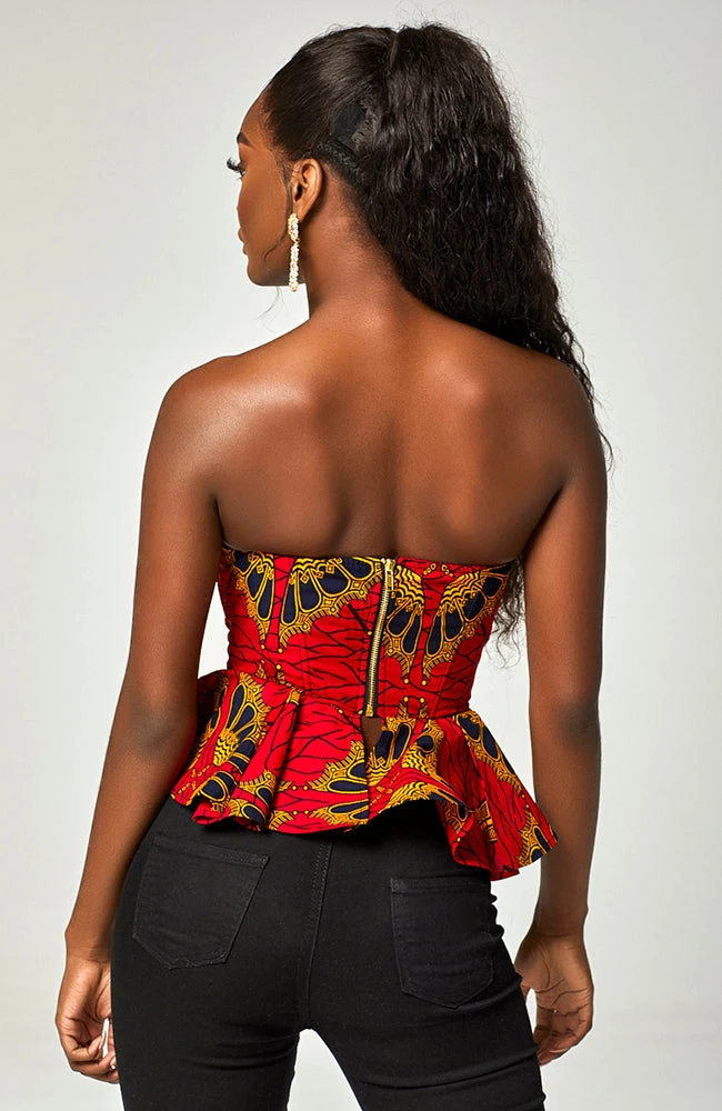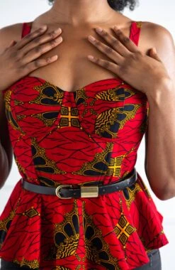 Our sexy African print peplum corset is cut from a bold Ankara wax fabric. This stylish African corset is cut to fit your silhouette perfectly and accentuate a slim waist. A feminine, sophisticated design, our ankara corset features proper corsetry boning for additional support, a detachable adjustable strap and a contrasting gold zipper to the back for easy on. Wear your African print peplum corset with denim and killer heels for a sexy sophisticated look.