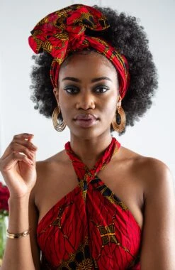 With its vibrant red fabric and versatility, this Ankara African Wax Print Headwrap is sure to become your favourite hair accessory! Featuring colourful African print hues, this headwrap can be worn in many different ways to enhance your favourite daytime and evening ensembles with effortless ease. Whether you’re having a bad hair day or you simply just want to add that extra dose of style to your outfit, this headwrap is sure to turn heads.