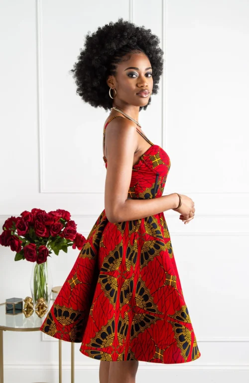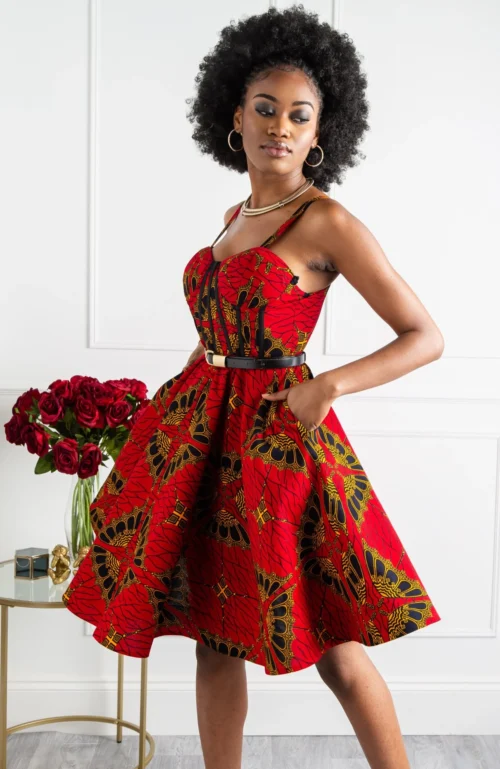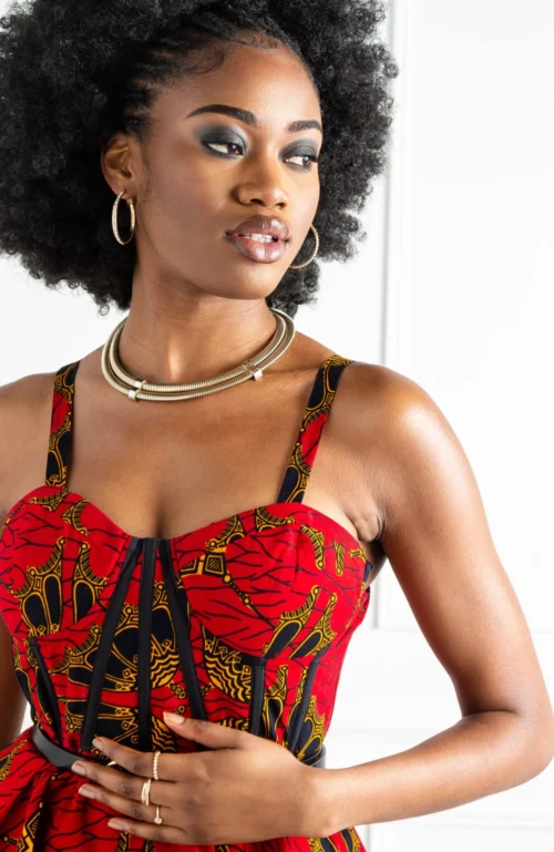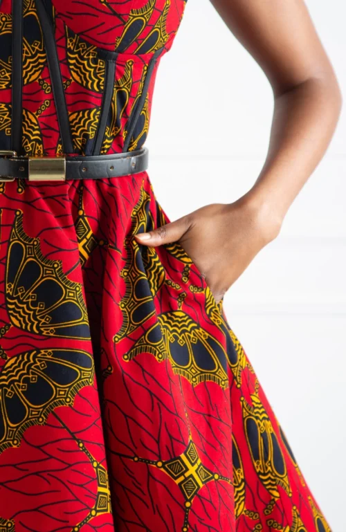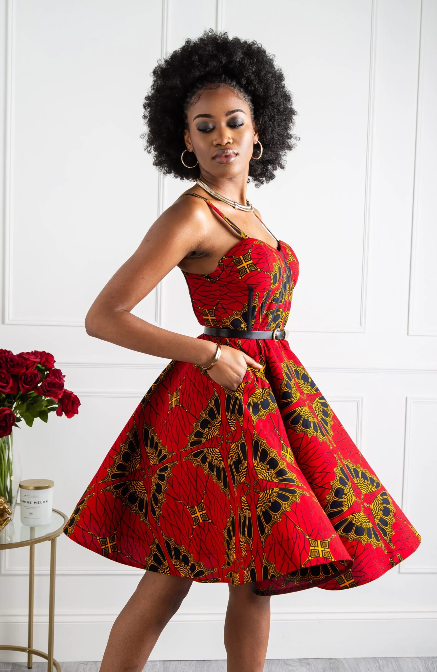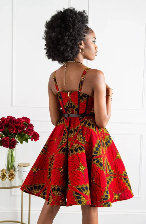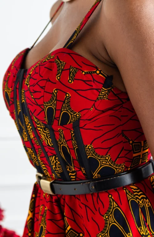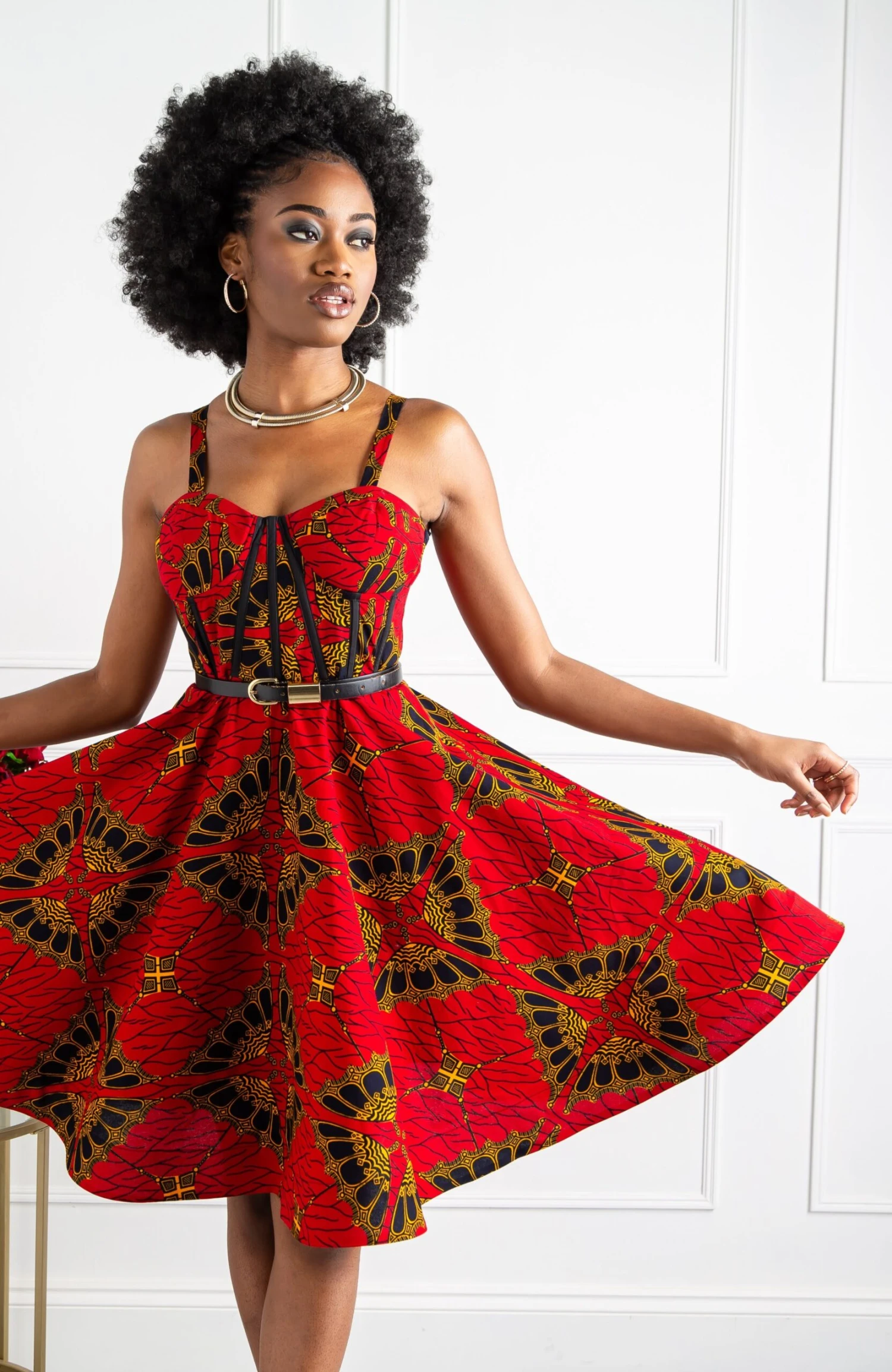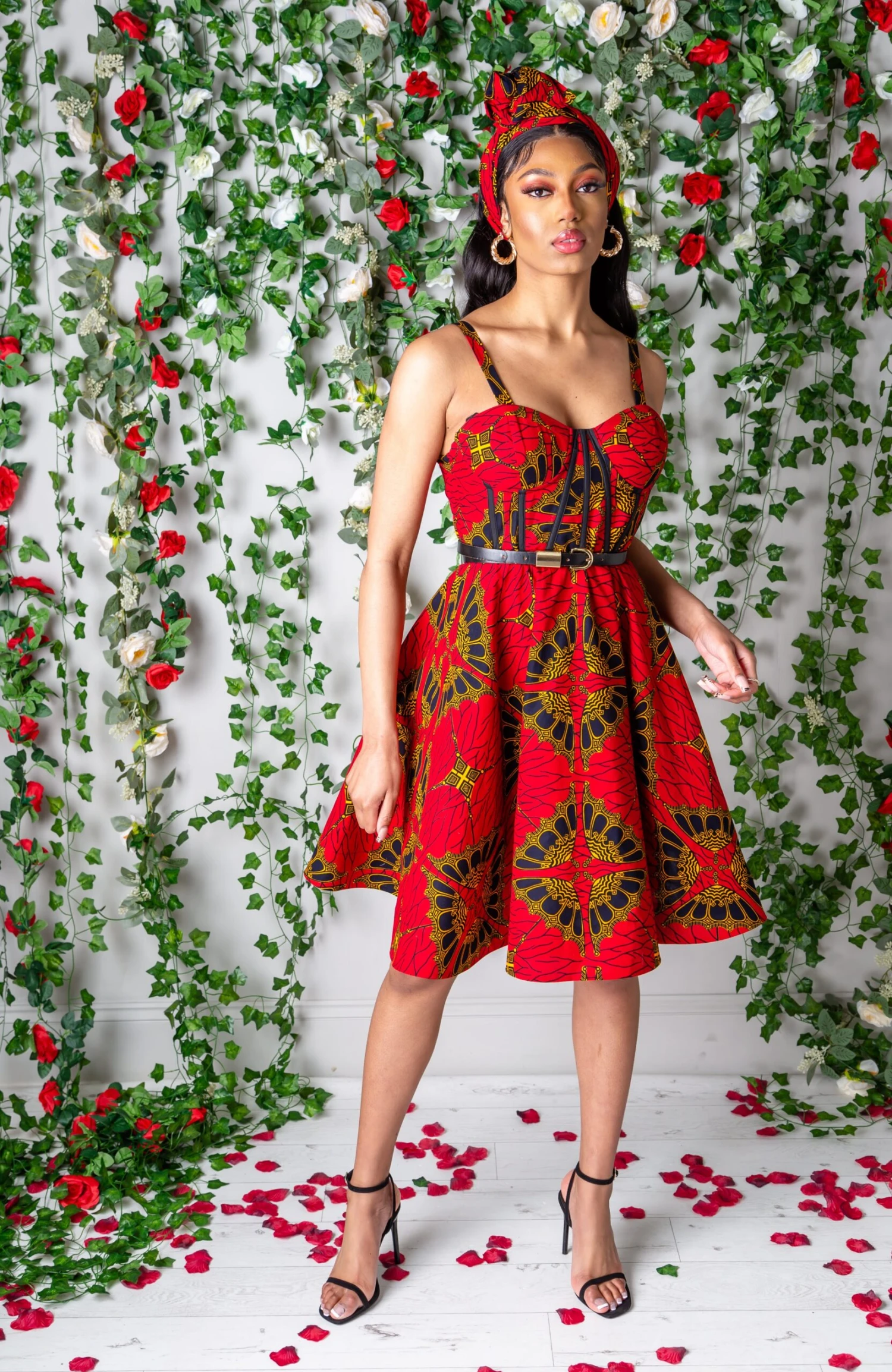 Have all eyes on you in our romantic Ankara Corset Fit & Flare Midi Dress; guaranteed to give your style some drama with its boned corset and underwired cups, designed to sculpt your hourglass figure to perfection. Just add some strappy heels and a mini bag for a look we know you will love.