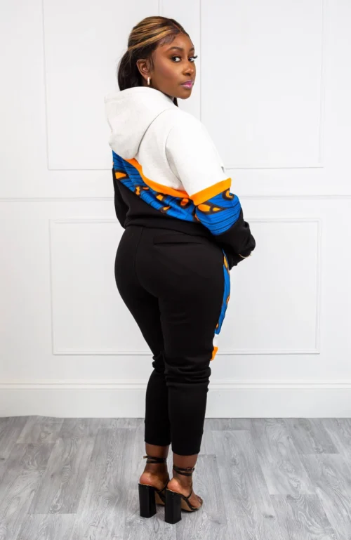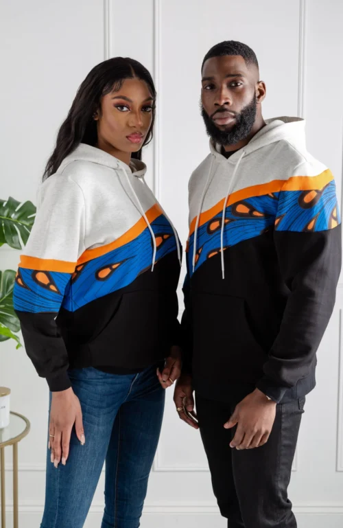 Are you going out or staying in?! It doesn’t matter – you’re gonna look and feel incredible in our Unisex Ankara Hoodie no matter what! Featuring a drawstring hood, cuffed sleeves, and an elasticated waistband, our Asymmetric Stripe African Print Hoodie is the ultimate combination of comfort and fashion. Representing Nigeria with our vibrant Ankara pattern, this Unisex Ankara Hoodie has a patterned stripe across the chest and on both sleeves, as well as a large kangaroo pocket on the front. Our Asymmetric Stripe African Print Hoodie is perfect for both men and women and is exactly what your closet has been missing!