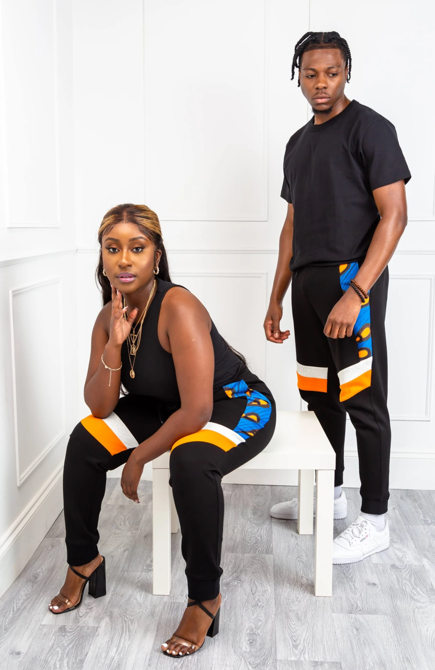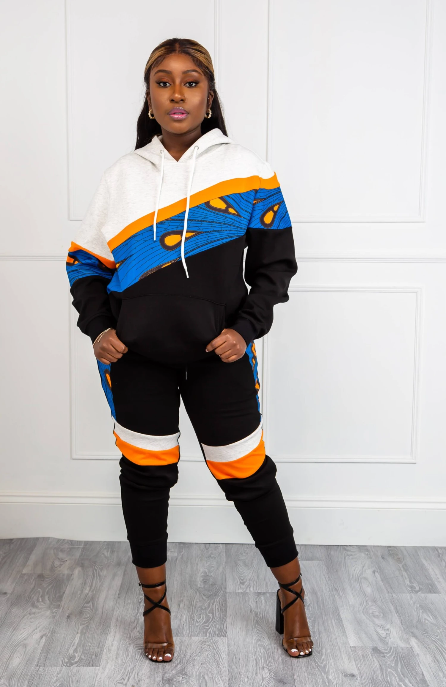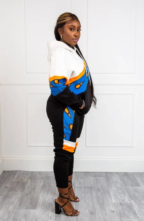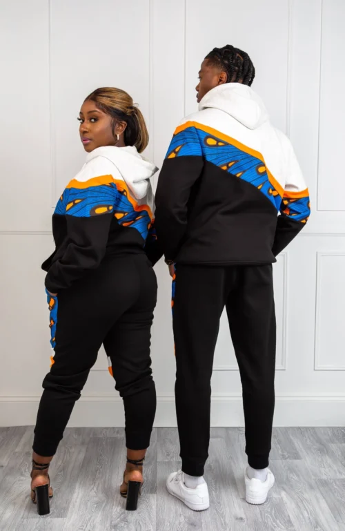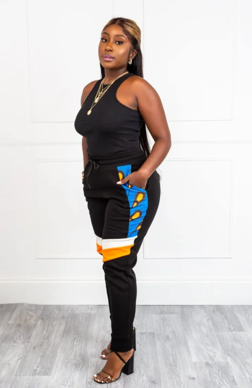 When fashion meets comfort – you get our Unisex Ankara Joggers! Featuring an eye-catching Ankara panel on the front and two colourful asymmetric stripes on the legs, plus an elasticated drawstring waist and cuffs, you’re guaranteed to feel great when you wear our Asymmetric Stripe African Print Loungewear. With one perfectly sized pocket on the back and a deep pocket on each side, our Unisex Ankara Joggers make it easy for you to carry your essentials with you wherever you go!