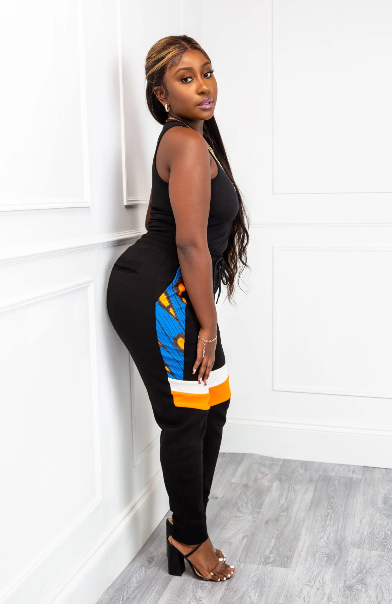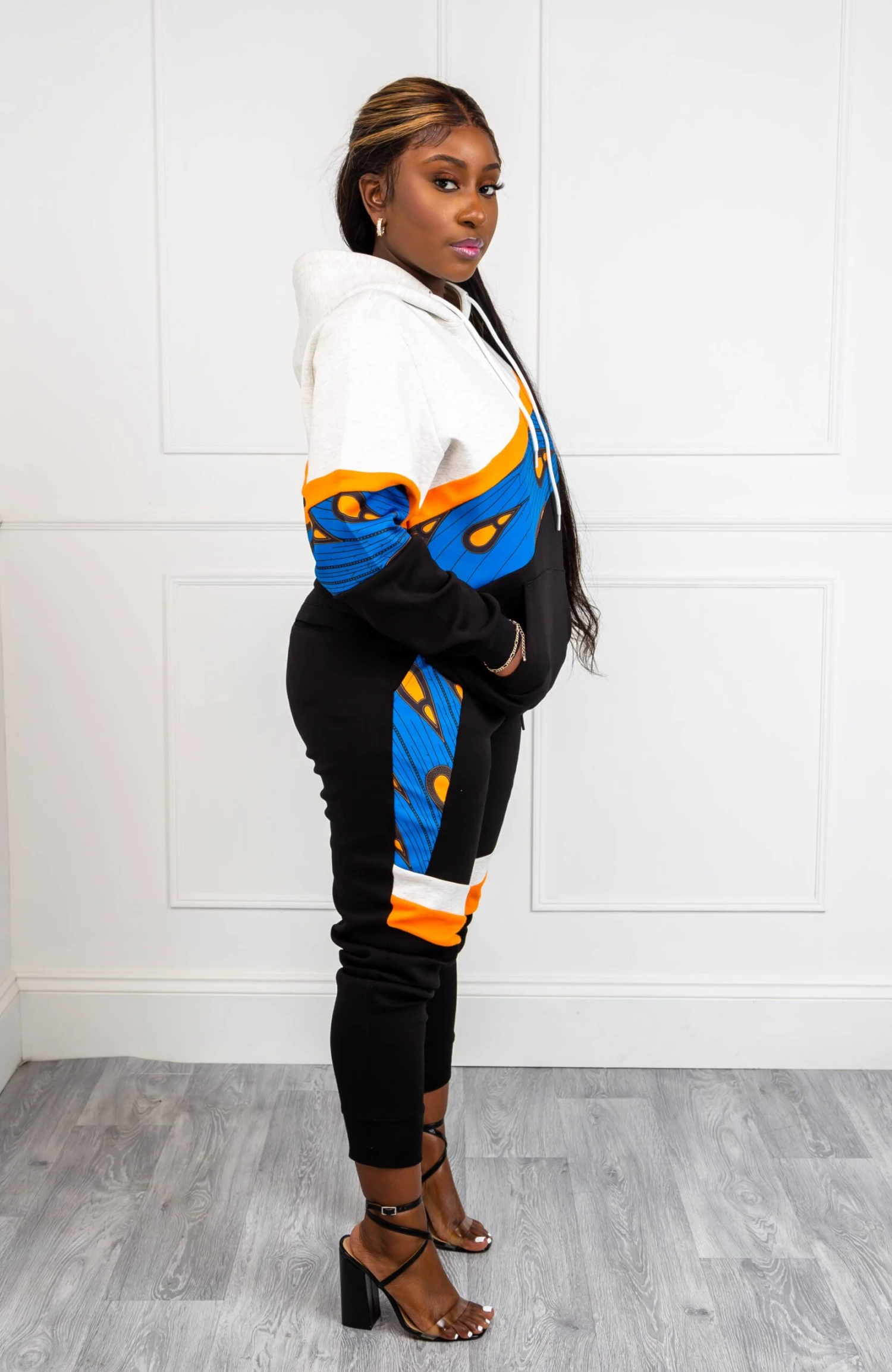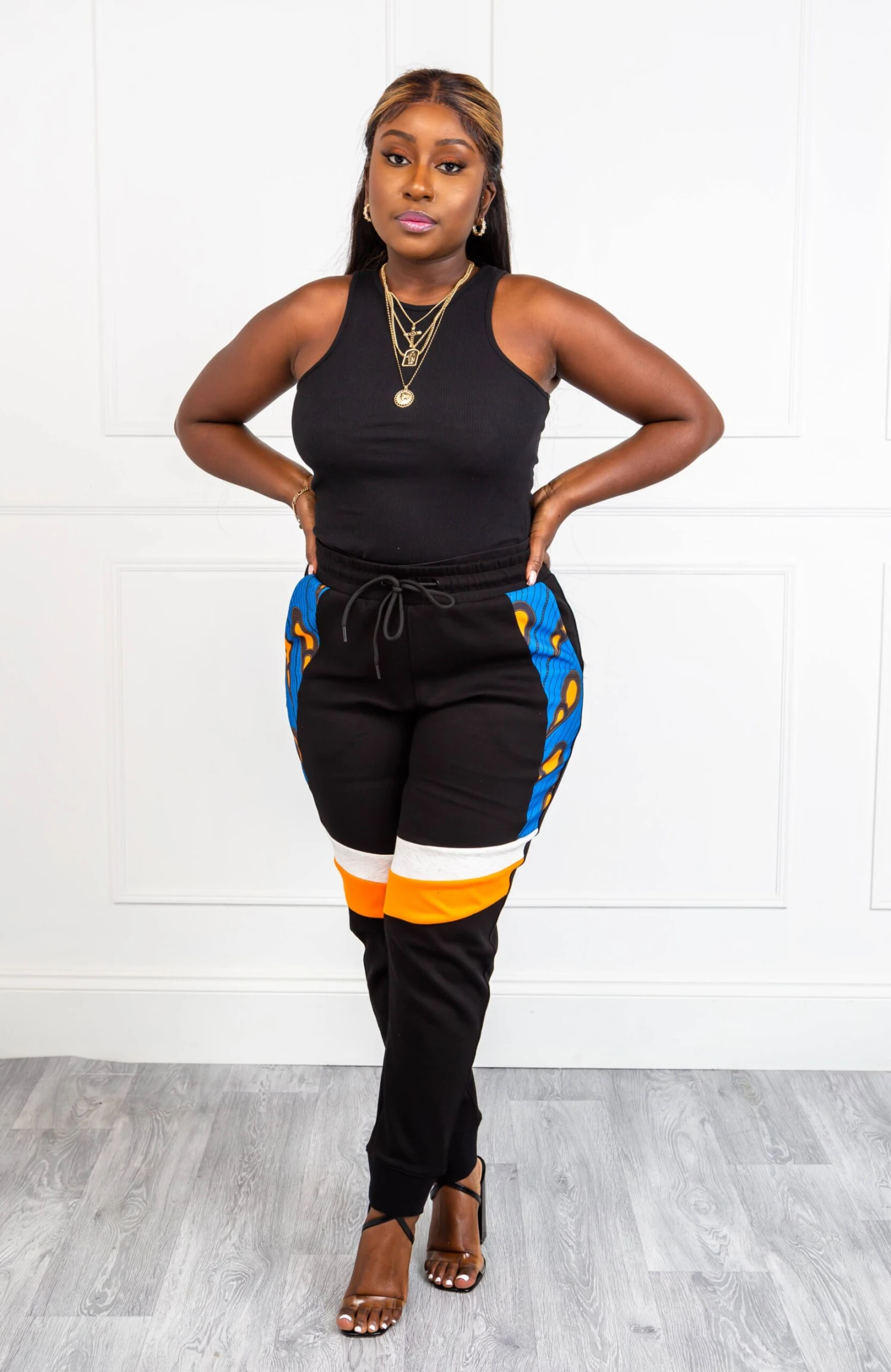 - Ankara pattern panel on legs