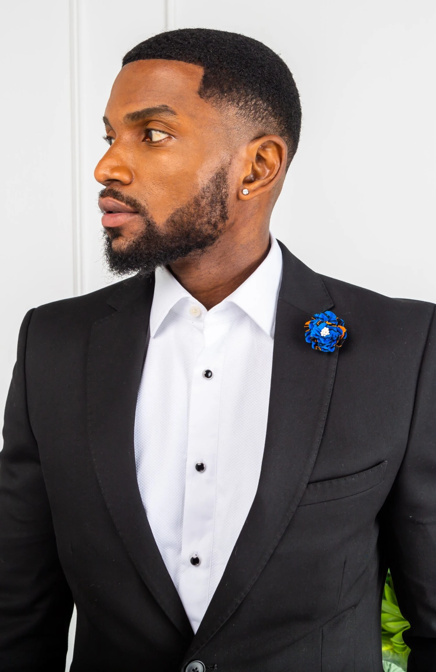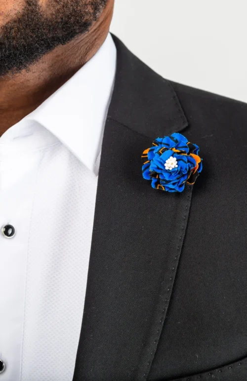Our Tie set comes with a long neck tie, matching pocket square, pre-tied bow tie, medium flower pin and a pair of cuff links that are sure to add a splash of colour to any gentleman’s jacket or blazer.