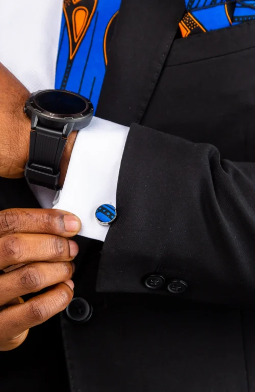 - A pair of ankara fabric cufflinks (0.5 inch diameter)