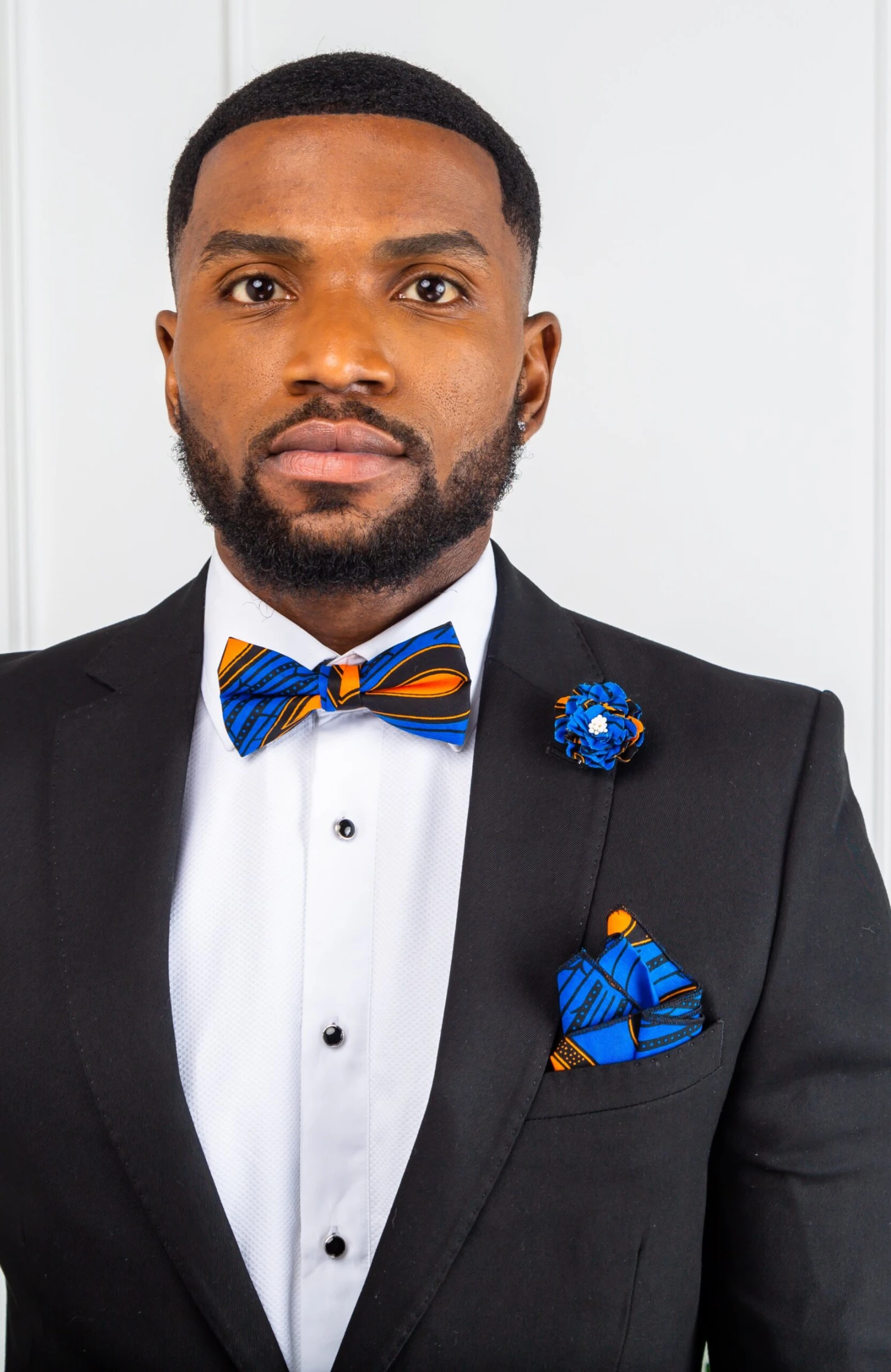 L’AVIYE Handmade African Print NeckTie Set. This wonderful five piece Ankara tie set will look great for any occasion. Made from 100% cotton fabric with the West African ankara wax print for a stylish and classy African vibe.