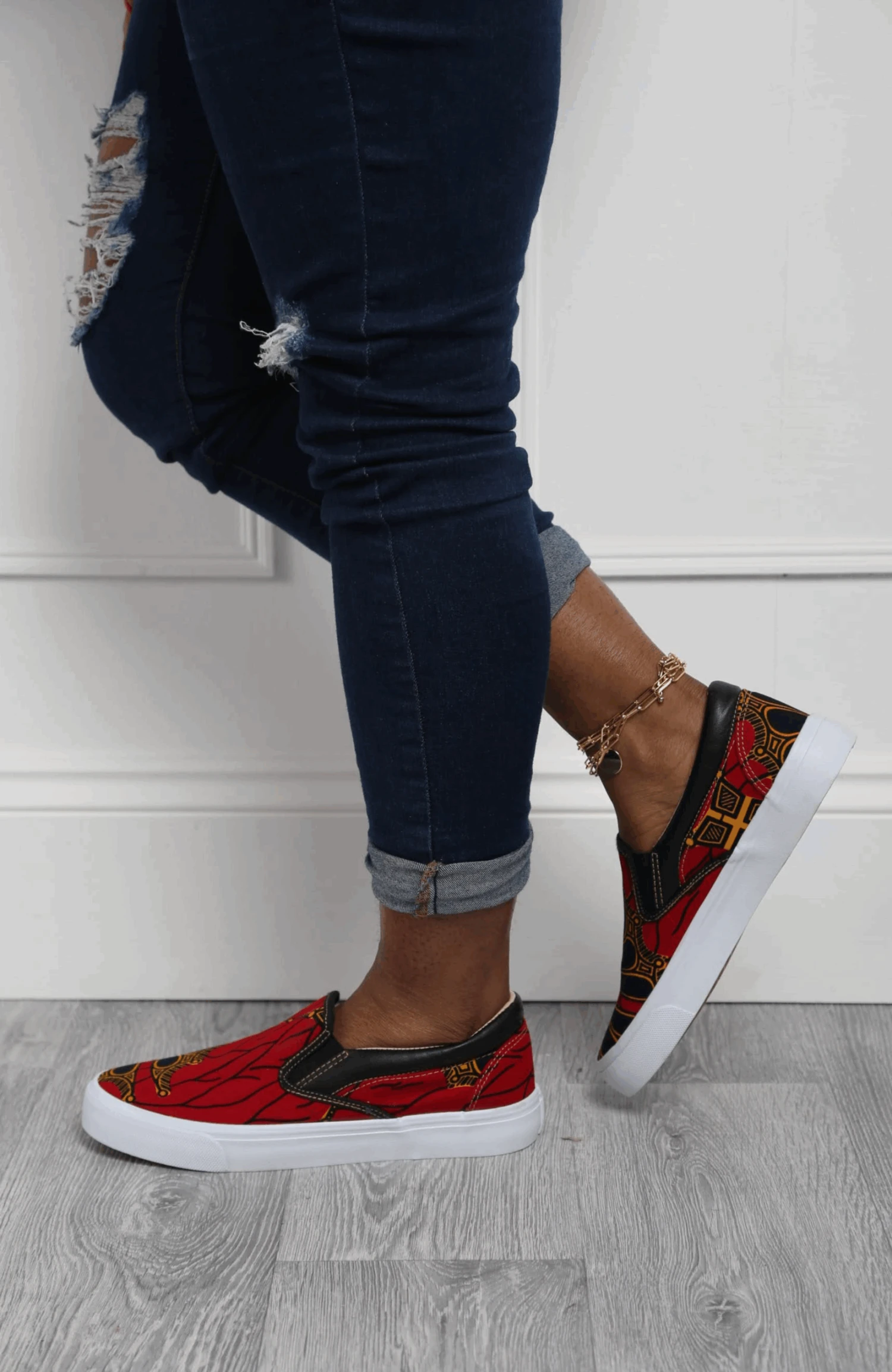 LAVIYE’s casual African print slip-on sneaker pumps are perfect for being on the move. Our ankara casual slip on pumps are designed and manufactured using authentic African print fabrics with an added black leather accent to complete its sleek look. These African print shoes are designed to make you feel comfortable, fashionable and stylish wherever you go & were designed to match LAVIYE’s African print backpack Cordelia.