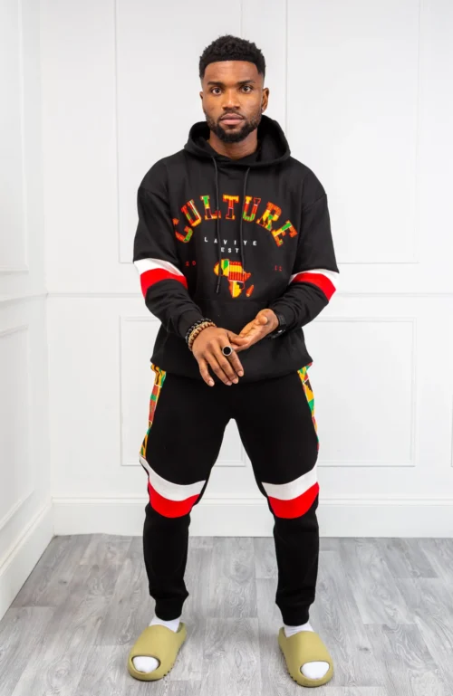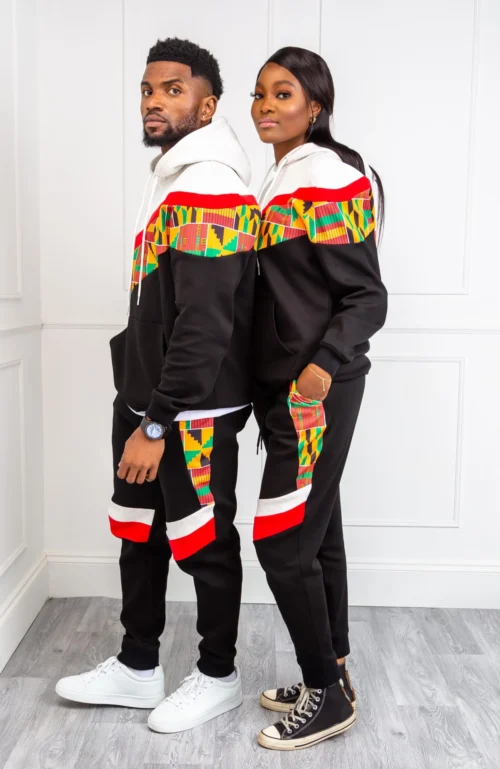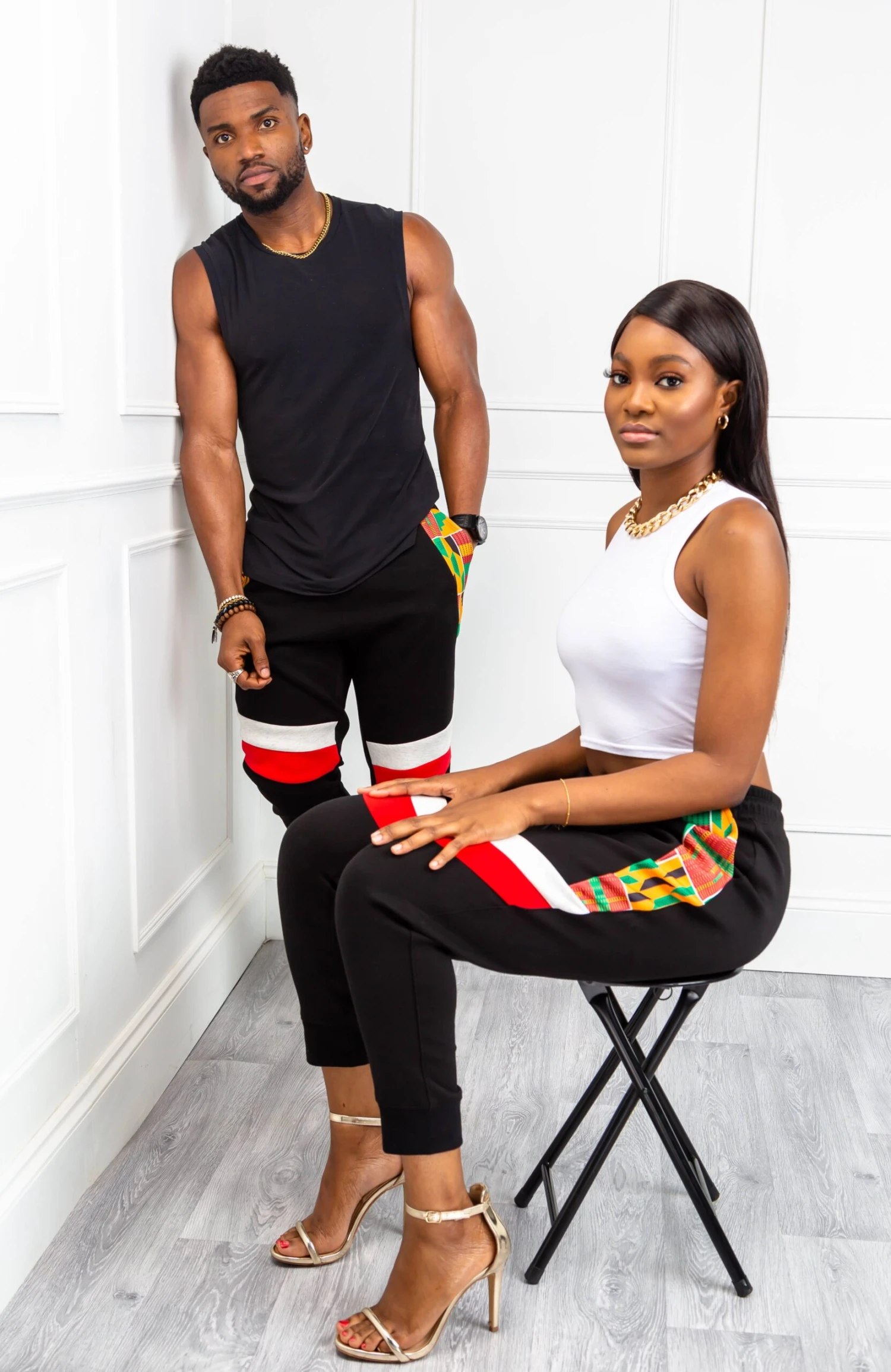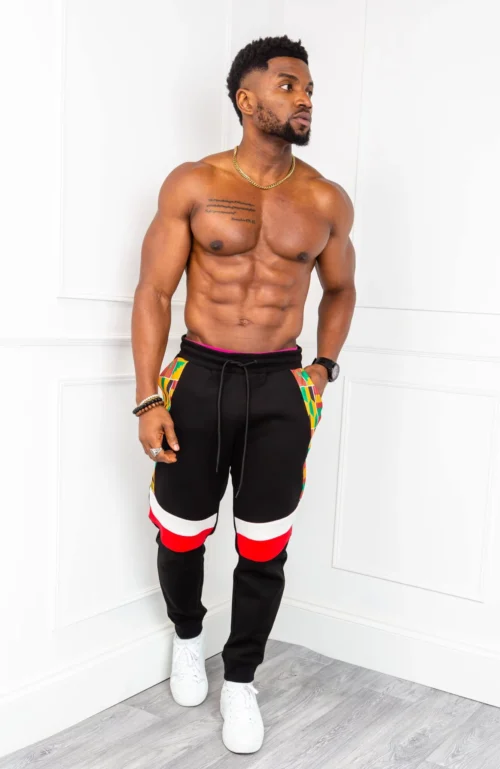 If comfort and style are important to you, then you need these Asymmetric Double Stripe African Print Joggers in your life! Featuring an eye-catching Kente panel on the front and two colourful asymmetric stripes on the legs, plus an elasticated drawstring waist and cuffs, you’re guaranteed to feel great when you wear our Unisex African Print Joggers. With one perfectly-sized pocket on the back and a deep pocket on each side, our Asymmetric Double Stripe African Print Joggers make it easy for you to carry your essentials with you wherever you go!