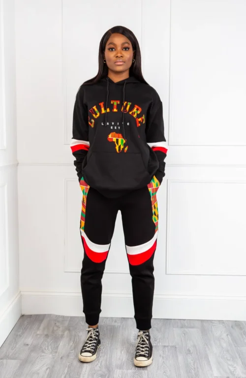If comfort and style are important to you, then you need these Asymmetric Double Stripe African Print Joggers in your life! Featuring an eye-catching Kente panel on the front and two colourful asymmetric stripes on the legs, plus an elasticated drawstring waist and cuffs, you’re guaranteed to feel great when you wear our Unisex African Print Joggers. With one perfectly-sized pocket on the back and a deep pocket on each side, our Asymmetric Double Stripe African Print Joggers make it easy for you to carry your essentials with you wherever you go!