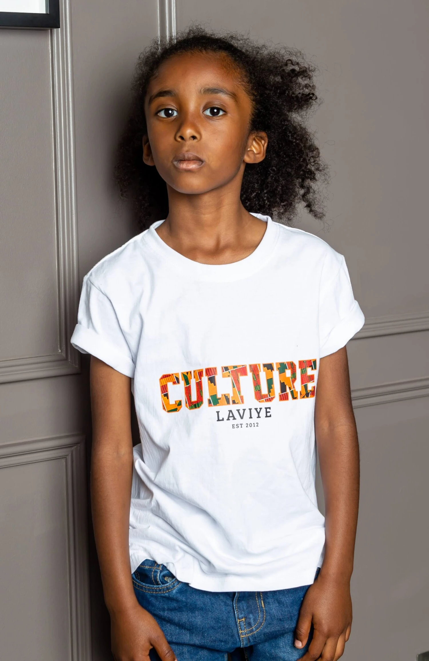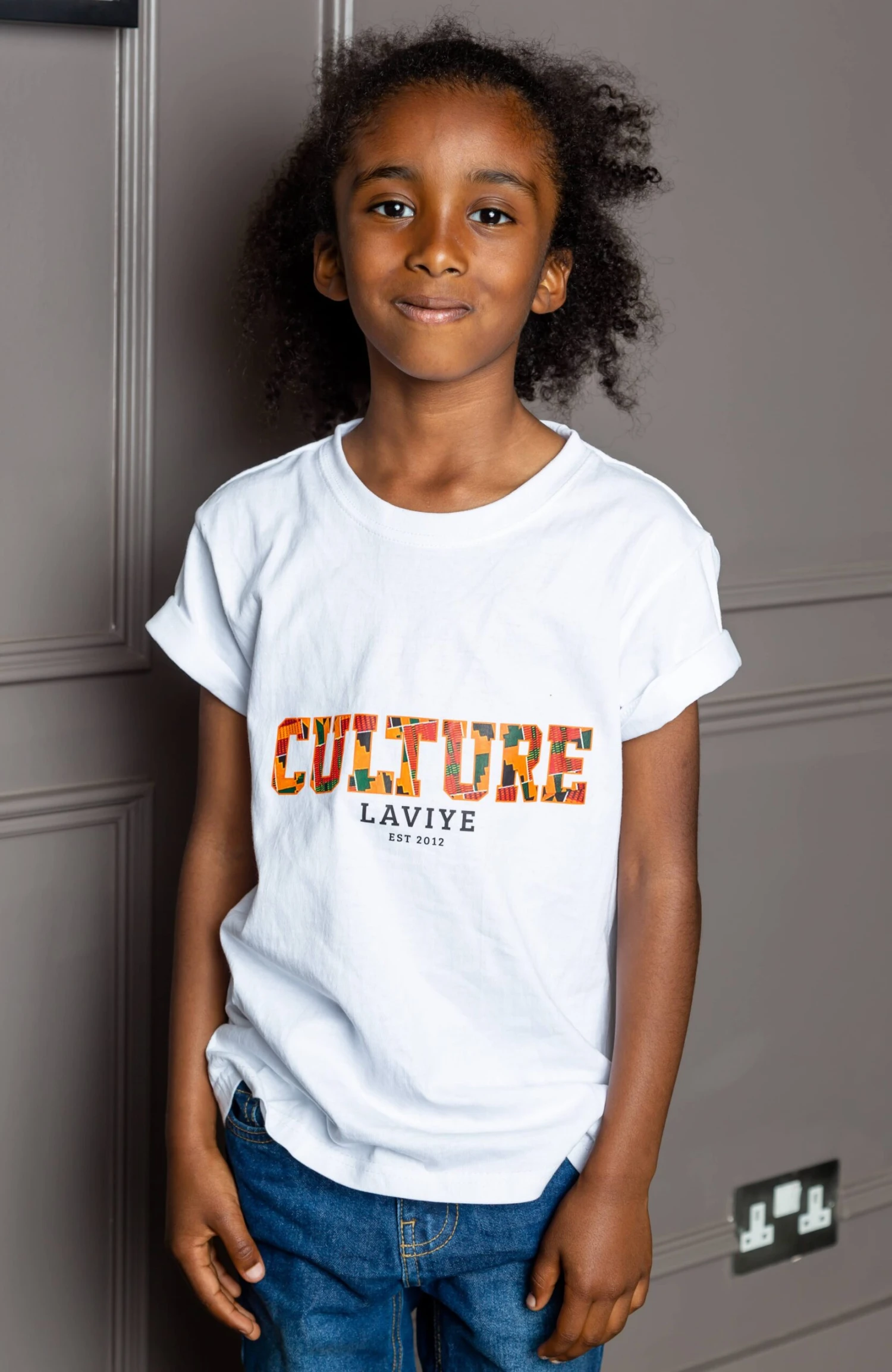 Introducing your kid’s new favourite African print t-shirt, exclusive to LAVIYE. Our limited edition ‘Culture T-Shirt’ is the classic tee that every wardrobe needs. Let your kids represent their culture with this Unisex African Print Graphic T-shirt.