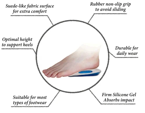 - Fitted gel inserts provides protection and comfortable cushioned support for your heels whether you’re wearing shoes, boots or trainers