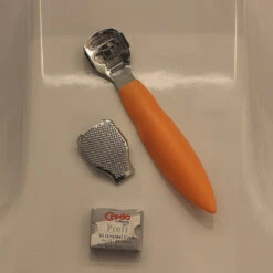 - The sharp yet safe stainless steel blade is used for cutting off dry and hard skin while the file attachment is for smoothening the skin