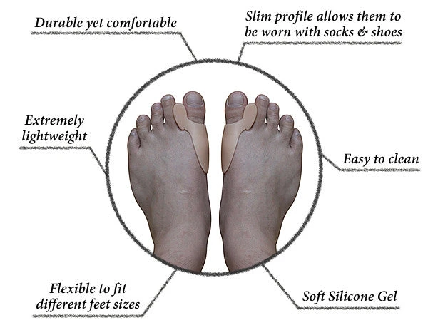 By keeping your big toe separated, it will be protected from all the common symptoms of a bunion (hallux valgus) – pain and swelling, corns and calluses, sore skin and overlapping toes – not to mention the inability to find shoes that fit comfortably.