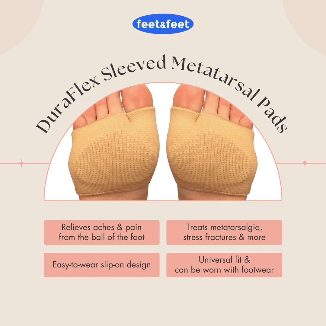 Take off the pressure and pain from the ball of the foot with our DuraFlex Sleeved Metatarsal Pads, designed to absorb shocks and impact to help alleviate symptoms of metatarsalgia and other related foot conditions.
