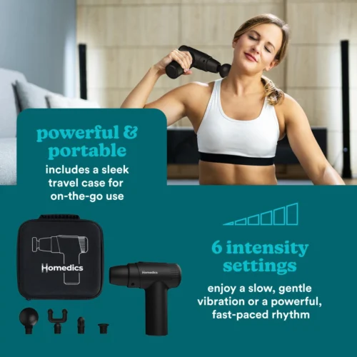 After an intense workout or a long, tiring day, your body will be tense and sore; the Homedics NOVO Mini Massage Gun is designed to help you physically recover faster.