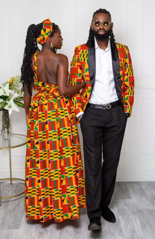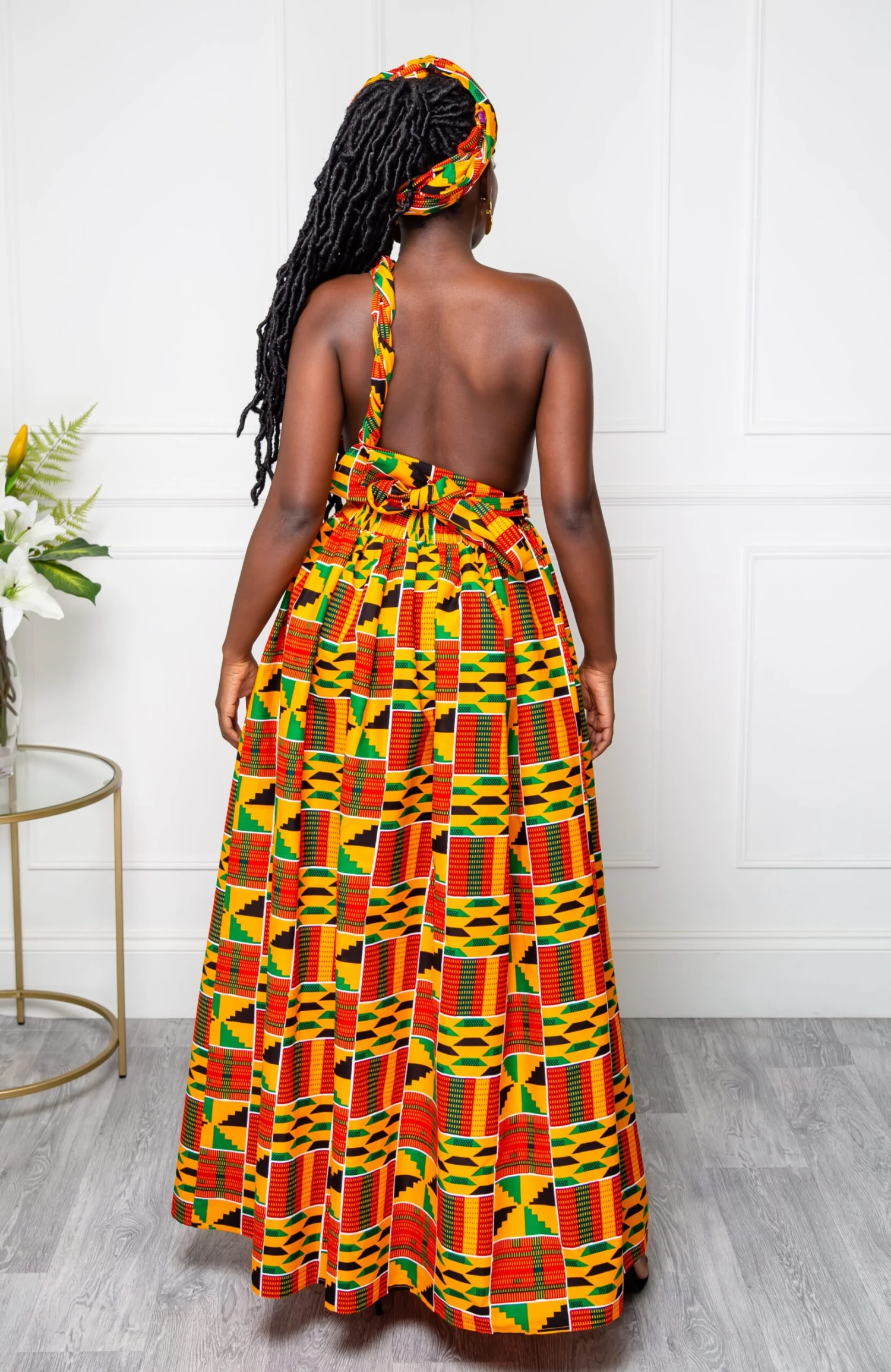 - African print infinity maxi length dress in a bold print fabric