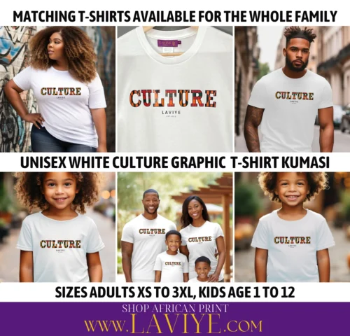 Introducing your kid’s new favourite African print t-shirt, exclusive to LAVIYE. Our limited edition ‘Culture T-Shirt’ is the classic tee that every wardrobe needs. Let your kids represent their culture with this Unisex African Print Graphic T-shirt.