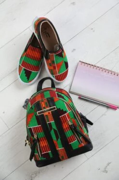 LAVIYE’s African Print Backpack will suit your personal expression for African fashion. Whether you’re a student, frequent traveller or on-the-go mom, LAVIYE’s ankara fashion women’s casual backpack will come handy. LAVIYE’s Ankara backpack has a soft padding that provides comfort and holds the shape of the bag in place. Our African print backpack is spacious enough for your tablets, books, makeup bag etc & can be carried by adults and kids. Designed to match LAVIYE’s African print casual sneakers ACCRA.