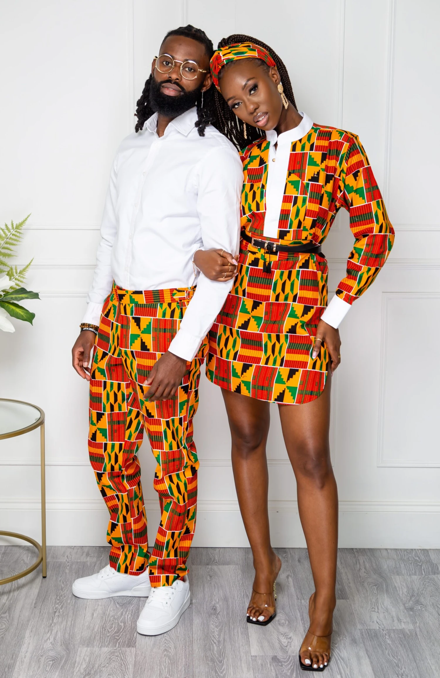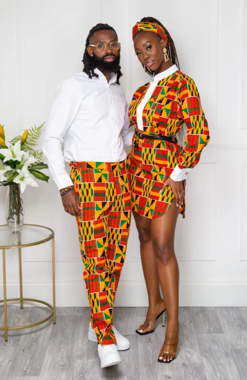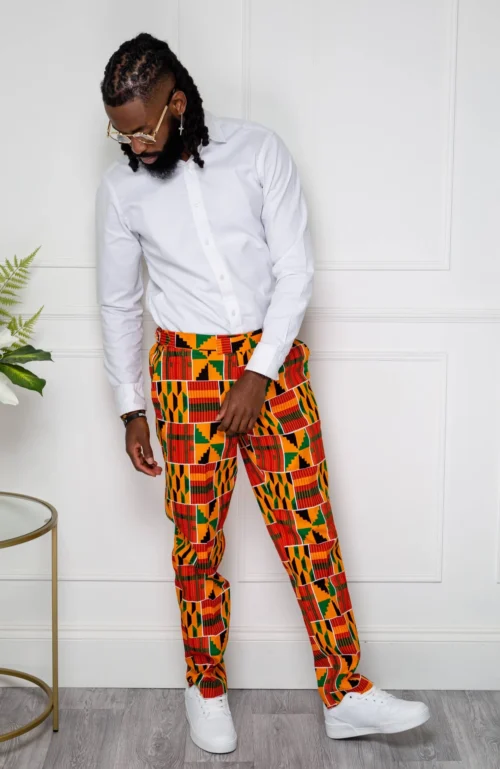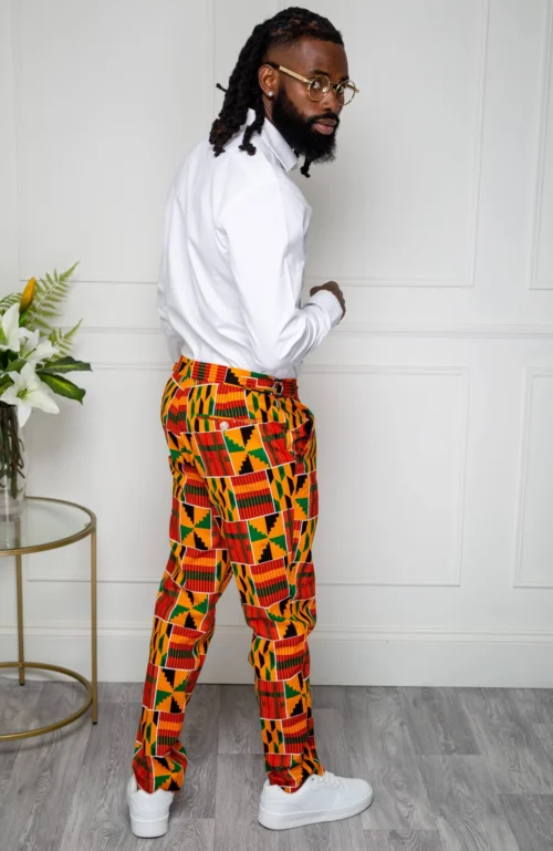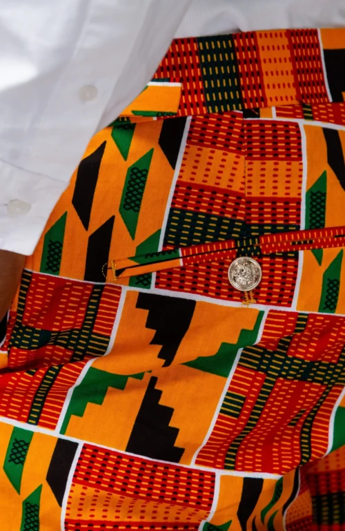- Trousers in a bold African fabric