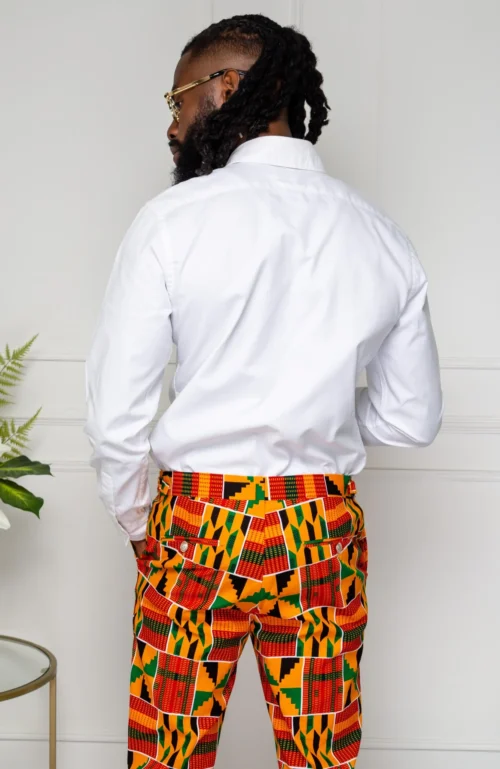 No matter what the occasion, you’re guaranteed to step out in style in these eye-catching African Print Pants For Men. Designed for the perfect fit, these Tailored Fit African Print Trousers for Guys feature an adjustable waistband as well as a triple fastening system including a zip, a button and two clasps. Both culturally vibrant and fashionably tailored, these exquisite African Print Pants For Men have multiple pockets and can be worn with shirts, blazers, or t-shirts to create a range of outfits that are as versatile as you.