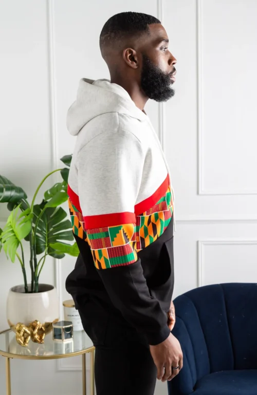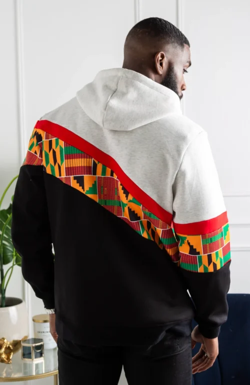 No matter whether you’re going out or staying in, one things for sure – you’re gonna look and feel incredible in our Asymmetric Stripe African Print Hoodie! Featuring a drawstring hood, cuffed sleeves, and an elasticated waistband, our Unisex Ankara Hoodie is the ultimate combination of comfort and fashion. Giving love for Ghana with our vibrant Kente pattern, this Asymmetric Stripe African Print Hoodie has a patterned stripe across the chest and on both sleeves, as well as a large kangaroo pocket on the front. Our Unisex Ankara Hoodie is perfect for both men and women and is exactly what your closet has been missing!