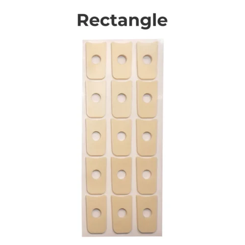 - Self-adhesive backing sticks directly onto the skin or inside footwear for extended use
