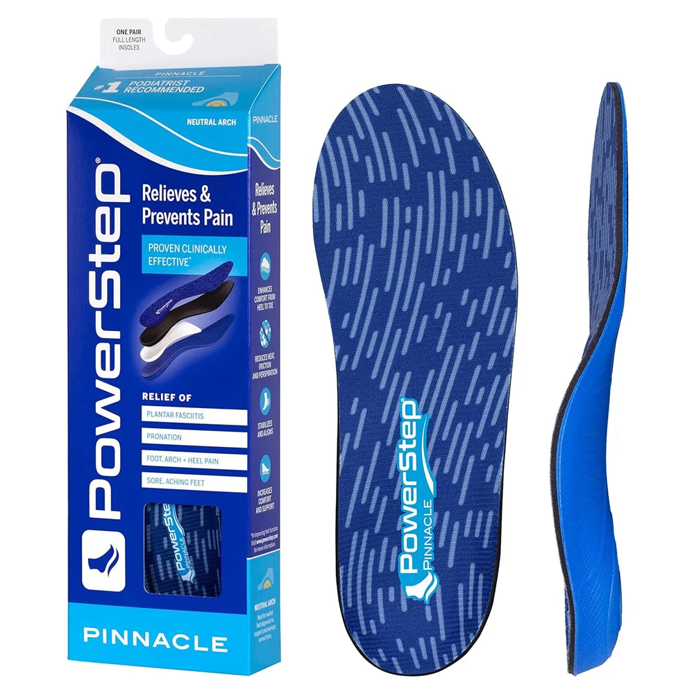 The podiatrist designed Powerstep Pinnacle Insoles are clinically proven to prevent and relieve foot pain from a variety of different foot conditions including plantar fasciitis, flat feet, overpronation, metatarsalgia and more.