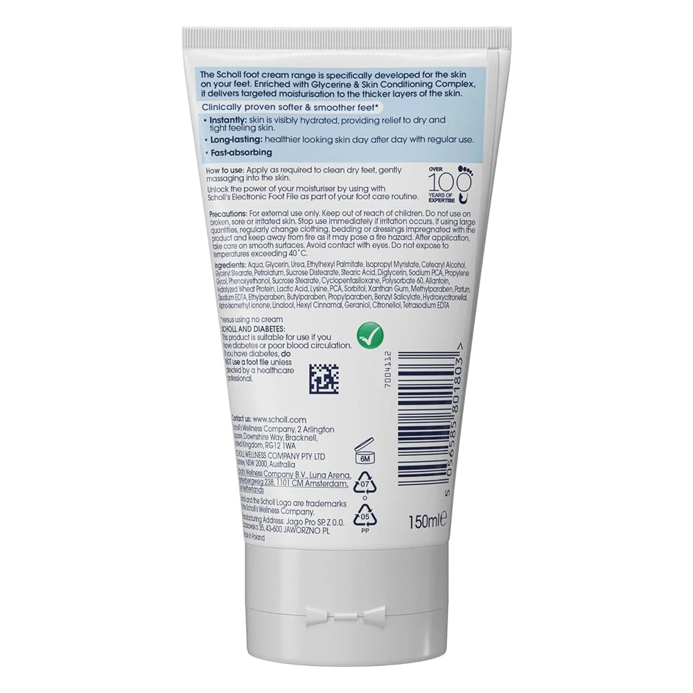 Moisturise your dry and hard skin with the Scholl Hydration Boost Foot Cream – expertly crafted with a special formula that leaves your feet feeling softer and smoother.
