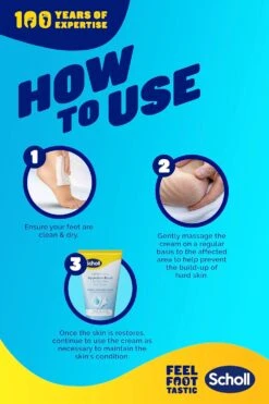 - To prevent hard skin from developing, gently massage the cream to the affected area.
