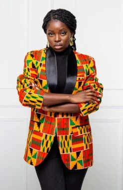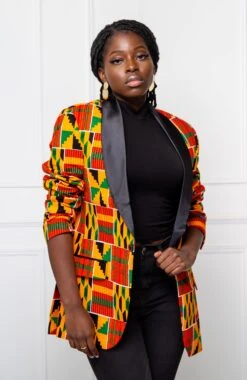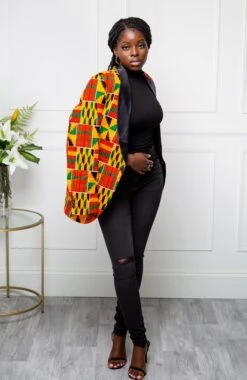 When it comes to sophisticated events, you need to dress to impress. Turn to this tailored L’AVIYE African blazer that sits against your frame for a neat outline. Our African print jacket features black shawl lapels for added elegance so you can be sure to stand out at night. For a classic black-tie look with an edge, swap your shirt for a roll neck and pair your African print jacket with tailored black trousers.
