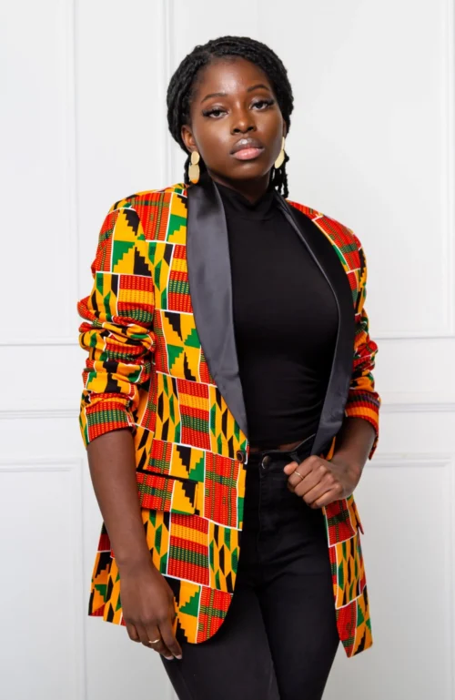 - Single-breasted shawl lapel African blazer