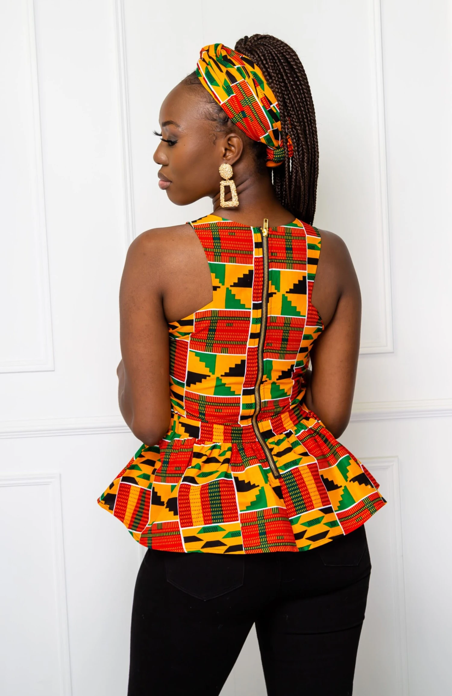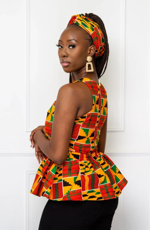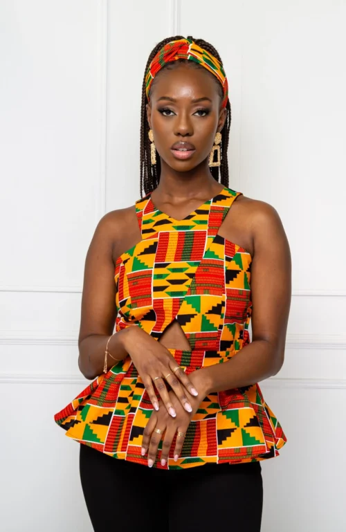 African Print Crossfront Peplum Top enables you to wear it the way you want when you want regardless of the global situation or climate Kente Top gives you the flexibility and variety no other top can.