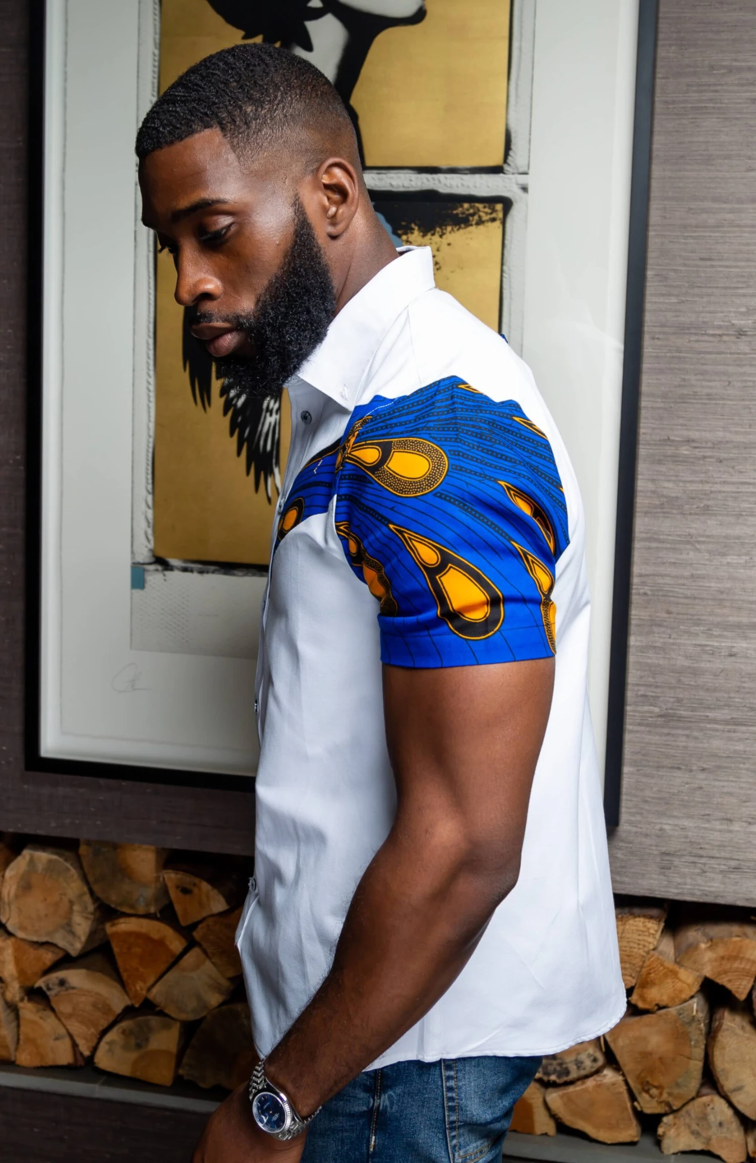 This super jazzy African Print Shirts for Men is made from 100% African wax fabric. It features a vibrant Ankara Floral design and a crisp tailored smart collar. This shirt is best paired with casual contrast shorts, a bucket hat and trainers for a complete colourful festival outfit.Â
